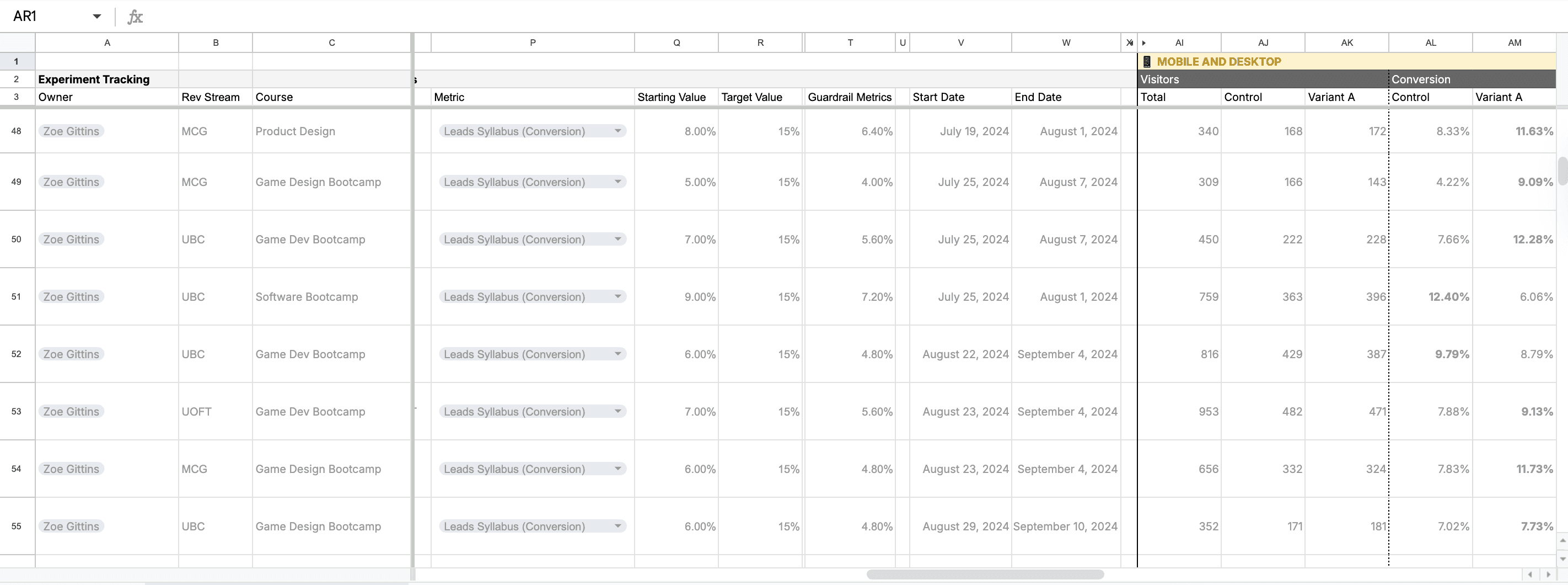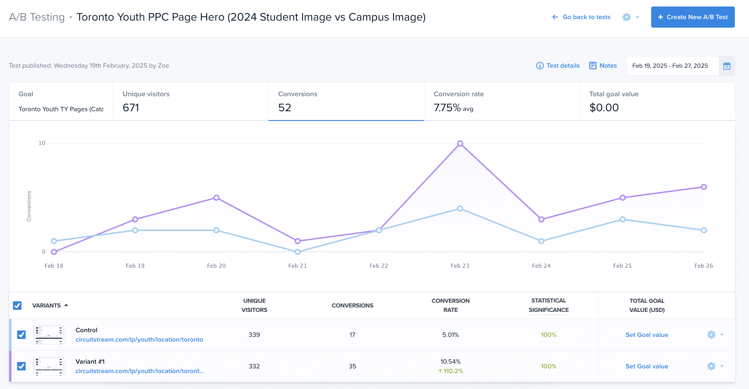 Once potential improvements were identified, each hypothesis was tested through a 50/50 traffic split between the control and a new variant. Every test was monitored closely for shifts in conversion rate, ensuring decisions were grounded in statistical significance rather than intuition. When a variant proved successful, those insights were rolled out across other lead-generation pages to compound the impact.